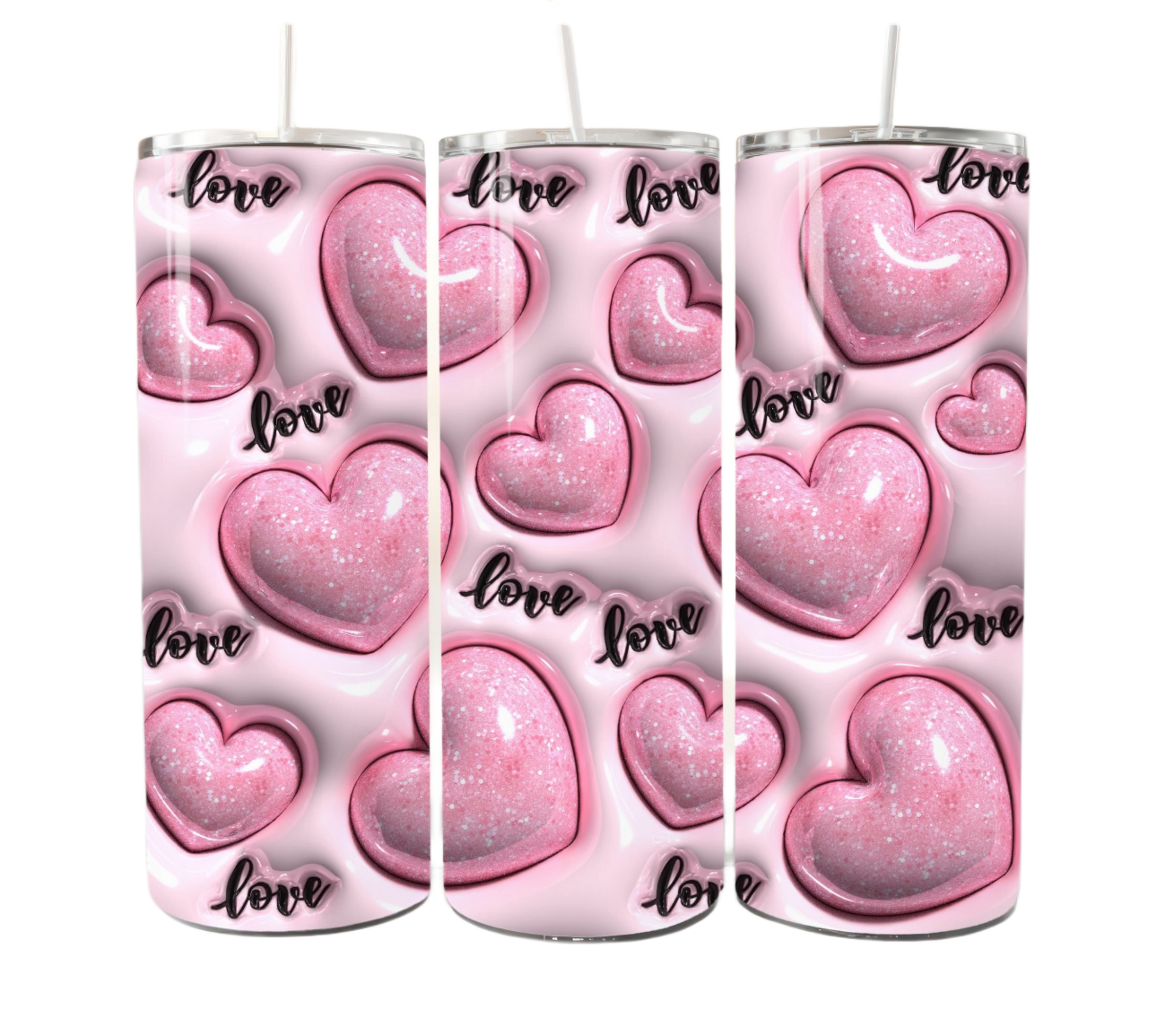 3D Pink Hearts 20 oz Tumbler
