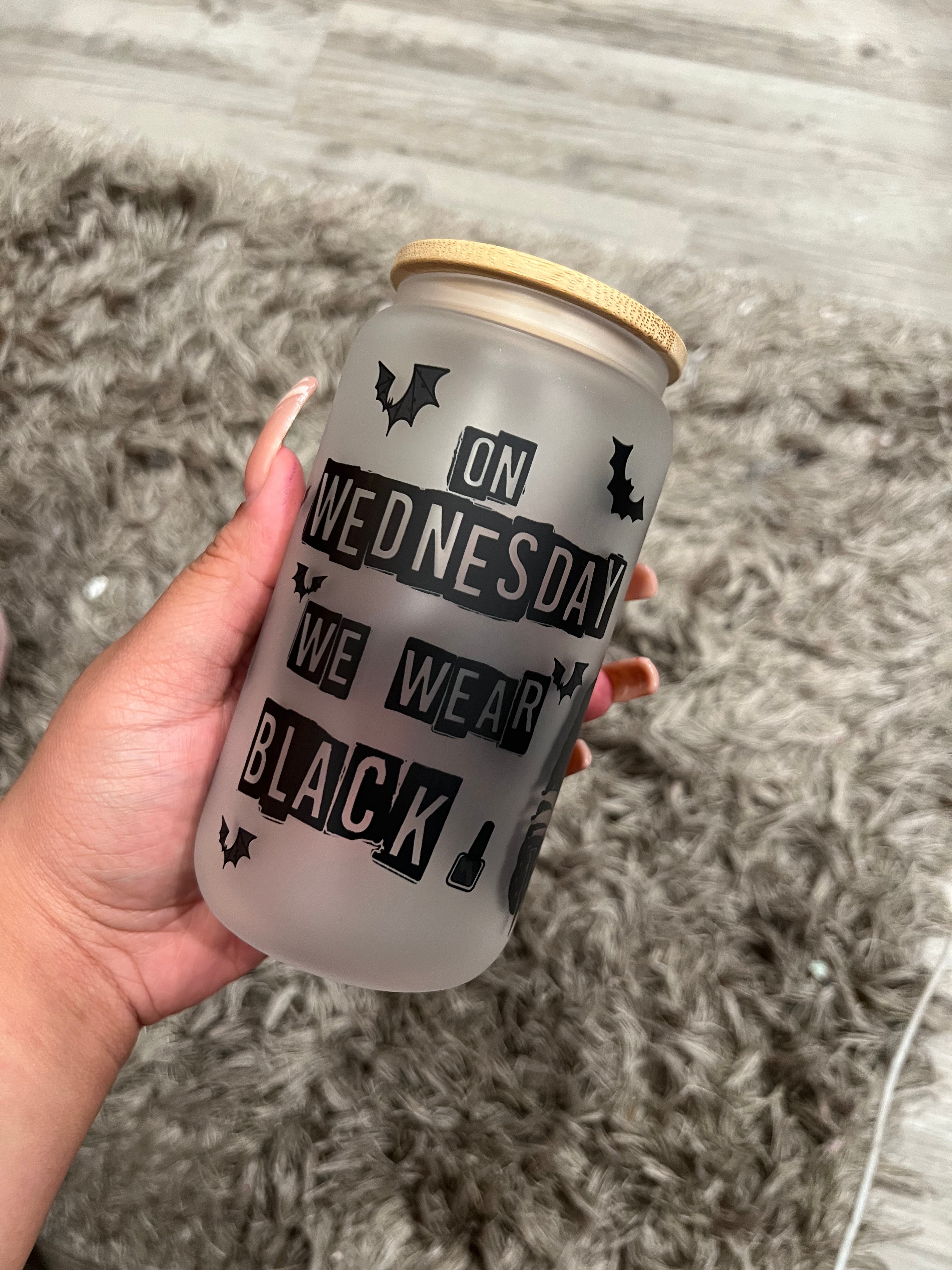 available in 16oz frosted glass cup, 20oz and 40oz stainless tumbler